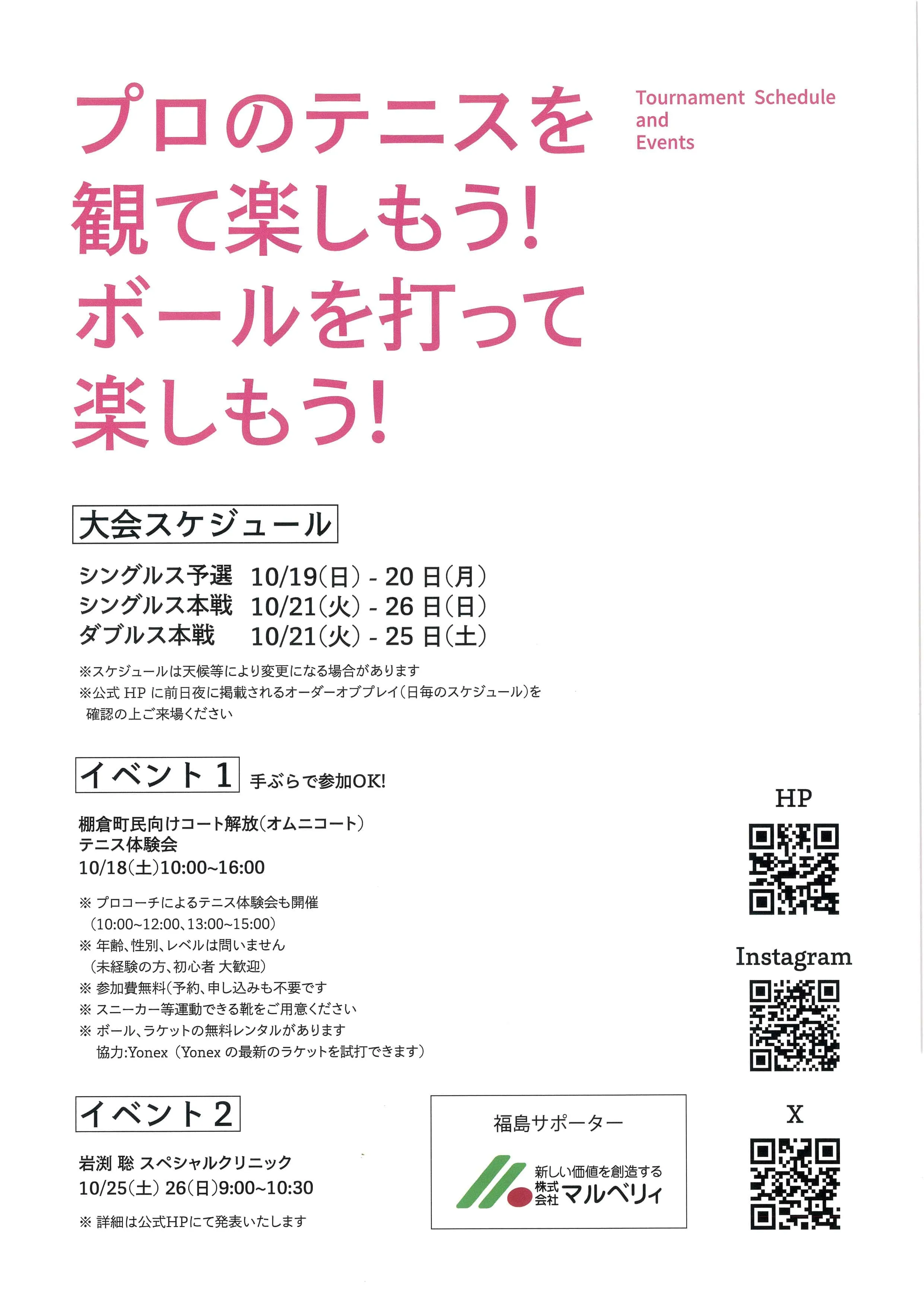 今年はプロテニスプレイヤーによる無料レッスンがあり、手ぶらで受講できます。