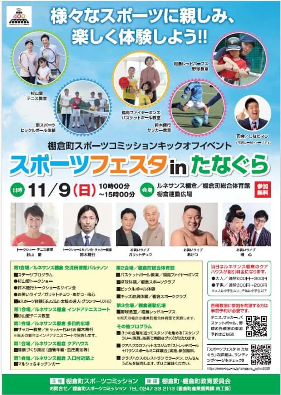 2025年11月9日(日) 10:00~15:00スポーツフェスタが開催されます。